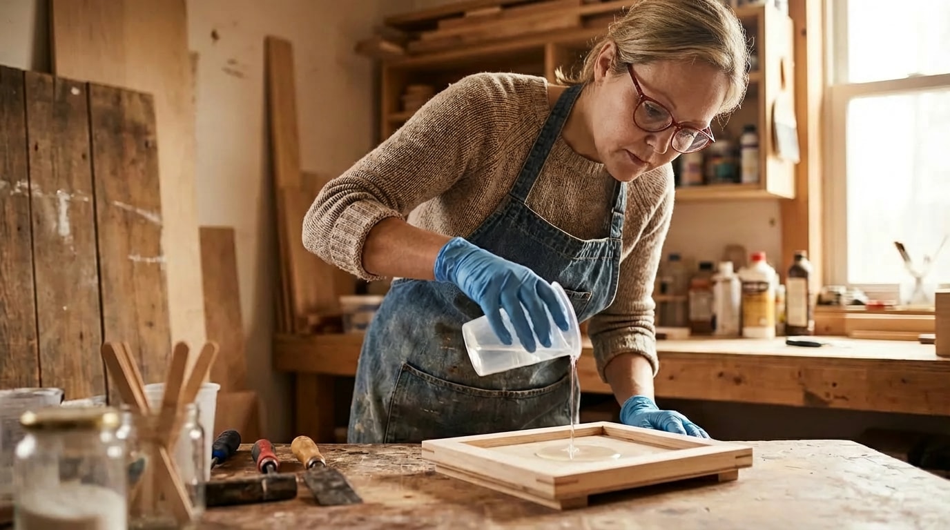 Résine époxy : bases, sécurité et mises en œuvre (mobilier, sols, bijoux) — niveau débutant